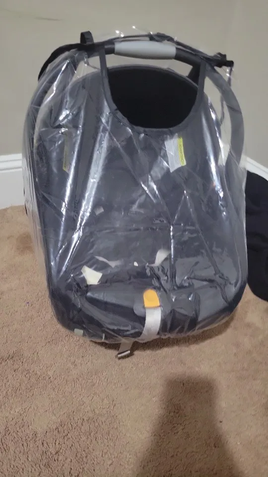The Baby Safety Seat Rain Cover provides complete weather protection with transparent EVA waterproof material for baby seats, strollers, and carriers. Features double zipper window and ventilation holes for air circulation and easy access.