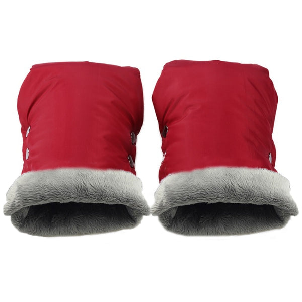Baby Stroller Armrest Waterproof Warm Gloves(Bright Red)