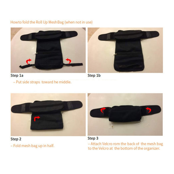 5. Structure: cup holder x 2, main pocket x 1, mesh pouch x 1, zipper detachable pouch x 1, roll up mesh pouch x 1