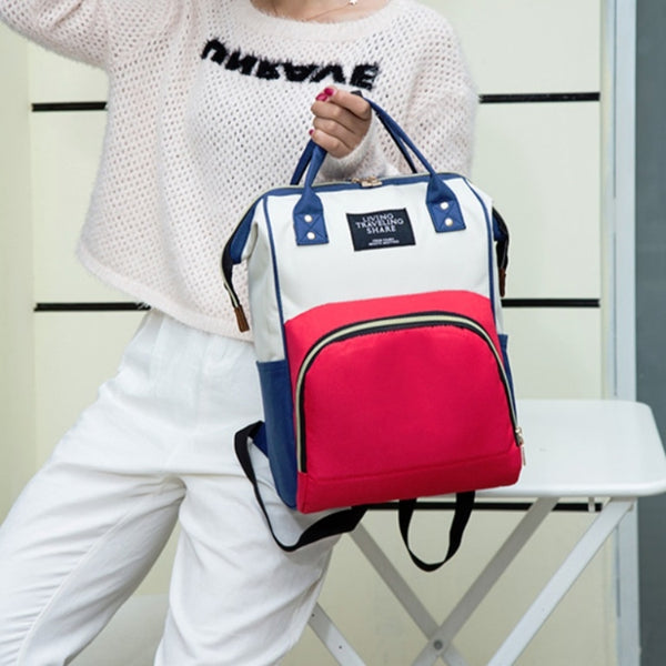 Red Beige Blue Mummy Diaper Backpack – Waterproof Oxford, Large Capacity