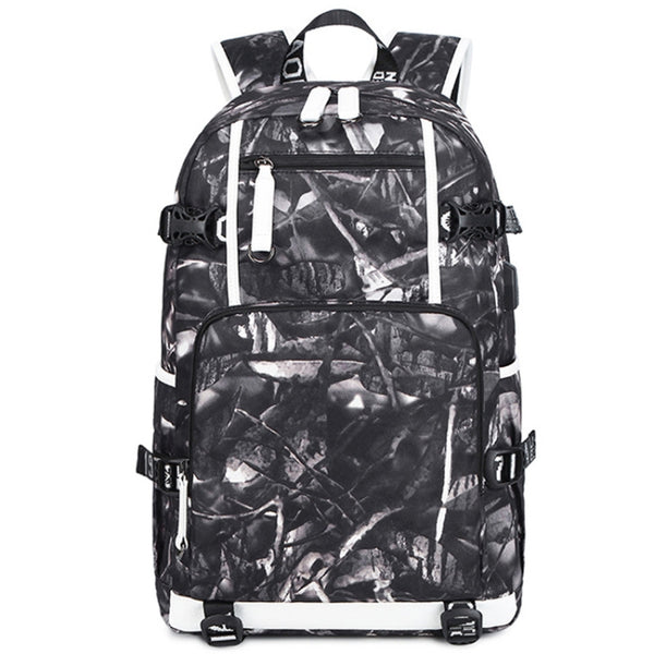 6101-5 Printed Backpack Large Capacity Computer Backpack Waterproof Student School Bag(Black Skin)