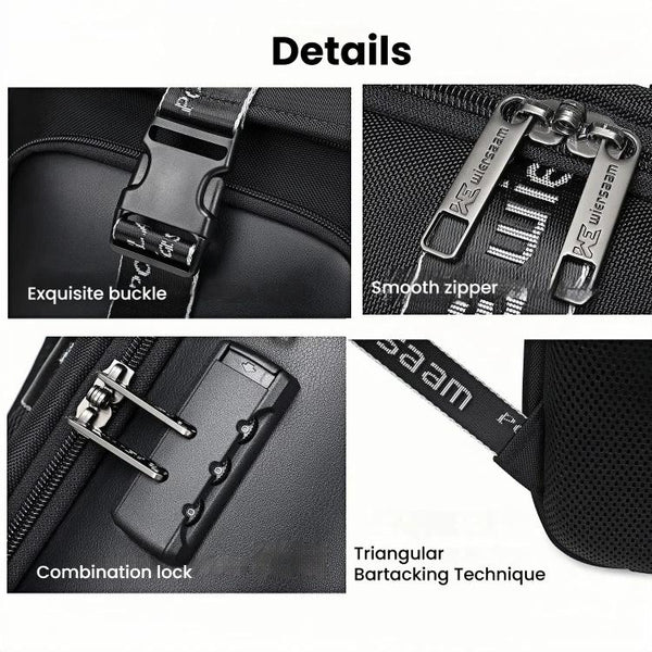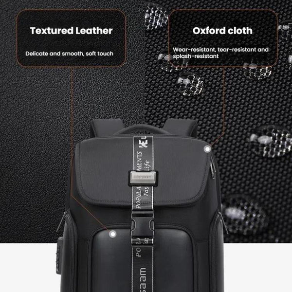 This sleek, waterproof WY1200 backpack is designed for students and teens aged 8+. It features anti-theft protection, USB and Type-C ports, and smart compartments for books, laptops, and essentials. Key Benefits Secure anti-theft back pocket Cushioned laptop compartment (up to 15.6") USB + Type-C ports for device charging Multi-pocket interior for organized storage Comfortable padded straps, breathable back Water-resistant Oxford fabric with leather accents Luggage strap for hands-free travel