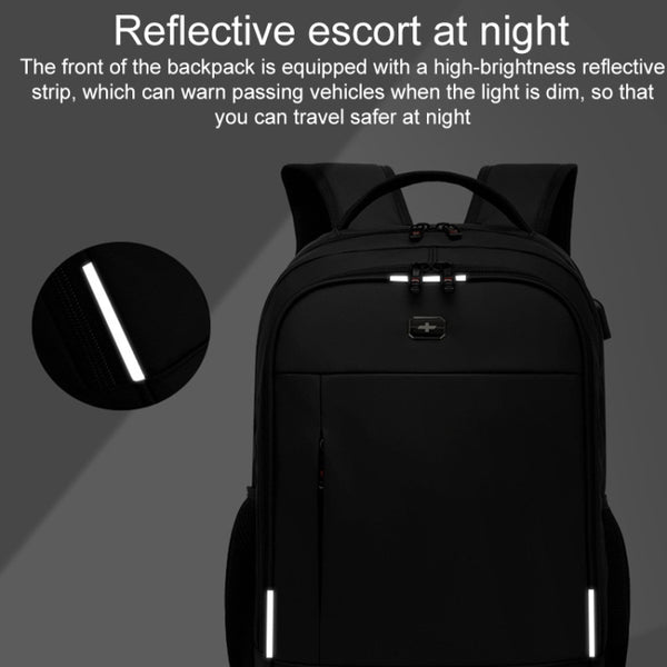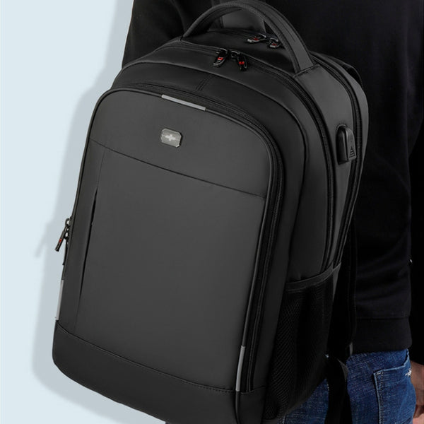 This 17" multifunctional backpack is perfect for school, work, and travel. Made of waterproof PVC, it features a built-in USB port and spacious compartments for daily convenience. Benefits: USB Charging – Connect your power bank and charge devices on the go Breathable Back – Soft 3D mesh panel for comfort and airflow Trolley Strap – Attaches to luggage for easy travel Reflective Strip – Enhances safety in low light Waterproof & Easy to Clean – Encrypted PVC resists stains and moisture