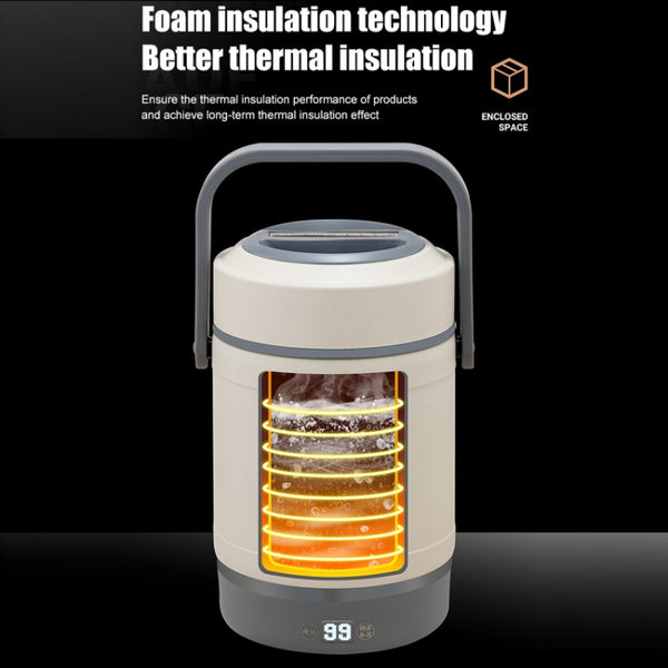 2.0L Beige Electric Insulated Lunch Box with Temperature Display – SUS304 Steel, CN Plug
