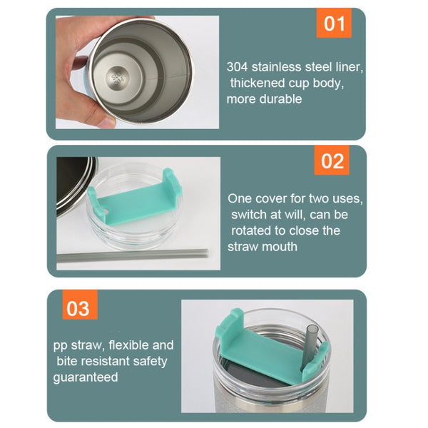 Key Benefits: Durable Stainless Steel: 304 stainless steel liner, double-layer body. Long-Lasting Insulation: Keeps drinks hot or cold 6-12 hours. Dual Drinking Options: Rotatable lid for straw or direct drinking. Safe & Flexible Straw: PP straw, bite-resistant and child-safe. Easy to Clean: Removable lid for simple cleaning. Trendy Design: Glitter Green Purple finish adds style.