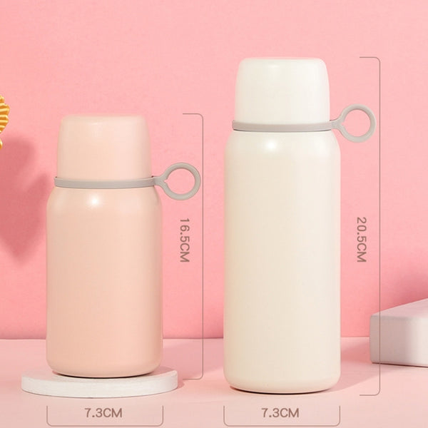 350ml 316 Stainless Steel Insulation Cup Large Capacity Big Belly Cup with Strap(White)
