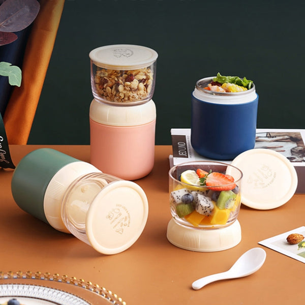 700ML 304 Stainless Steel Large-Capacity Double-Layer Soup Cup Student Yogurt Breakfast Cup(Blue)