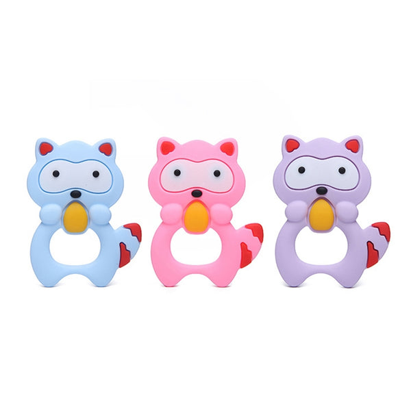 Baby Raccoon Tooth Gel Molar Stick Silicone Baby Bite Toy Hand Rattle Toy(Blue)