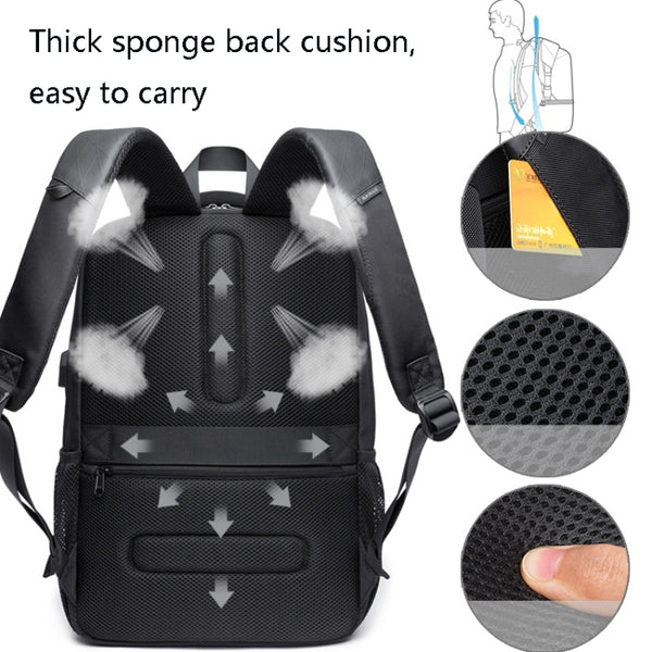 BANGE BG-1921 College Student Schoolbag Waterproof Business Computer Backpack with External USB Charging Port(Black)