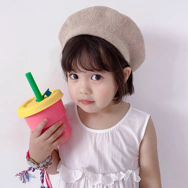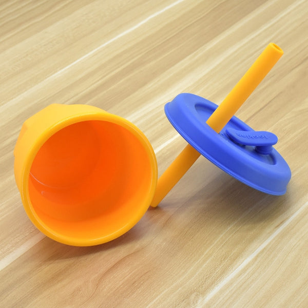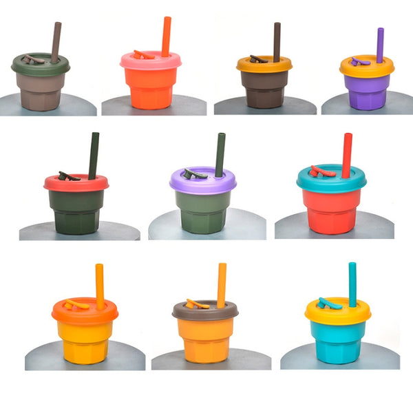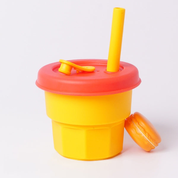 Children Silicone Straw Cups Drop And High Temperature Resistant Water Cups Yellow Cup + Red Cover(300ml)