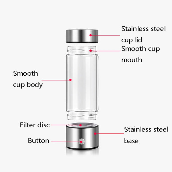 This portable hydrogen water cup is designed to elevate your hydration experience. Offering an efficient hydrogen and oxygen separation system, it creates hydrogen-rich water that improves hydration levels. Made with high-quality stainless steel and borosilicate glass, it combines durability with style, making it an ideal choice for health-conscious families and busy parents on the go.