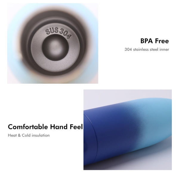 The JUNSUNMAY 500ml Yellow Purple Blue Vacuum Bottle keeps drinks hot or cold for hours. Its durable 304 stainless steel and sleek gradient finish suit outdoor activities, school, or work. Made with BPA-free, food-grade materials for safe. hydration.