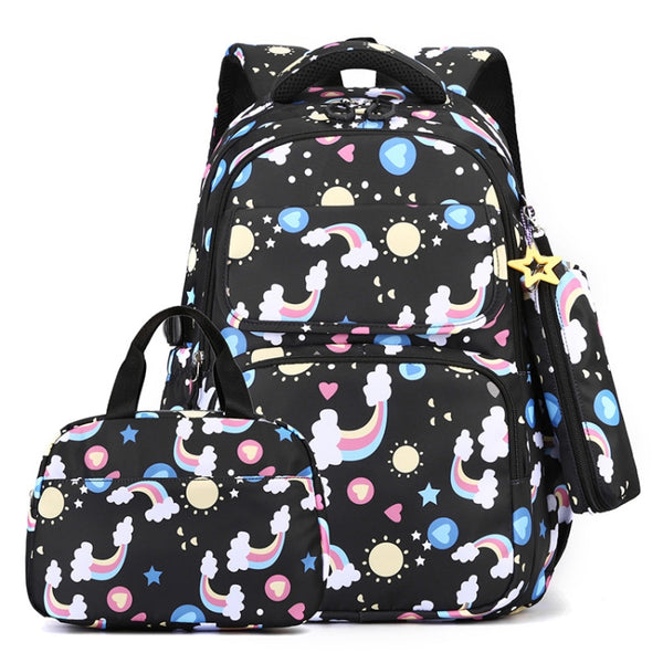Key Benefits Child-Safe Design: Protects posture and reduces load Complete Set: Backpack, insulated lunch bag, and pencil case Organized Storage: Multi-layer compartments for easy access Comfortable Straps: Adjustable, breathable shoulder straps for easy carrying Water-Repellent Fabric: Durable nylon, easy to clean