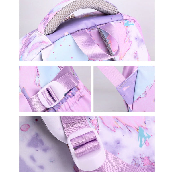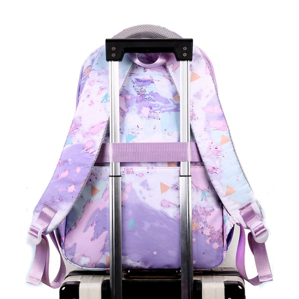 3-in-1 Purple School Backpack Set for Girls – Lightweight, Nylon, Trolley Strap