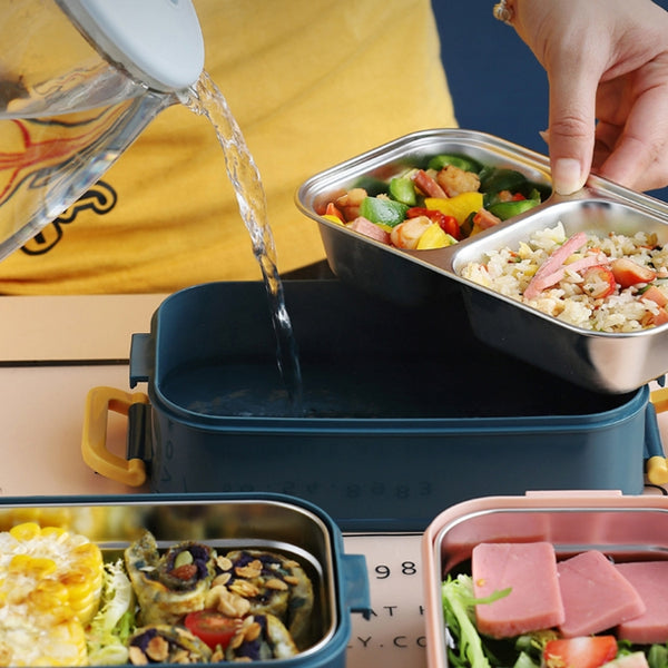 6. Boiled water can be added to the stainless steel inner tank compartment to keep food warm