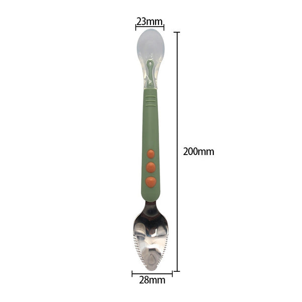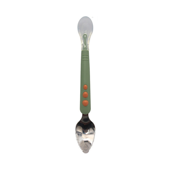 Multi-function Double-head Baby Food Spoon Baby Tableware Fruit Scraper Spoon(Green)