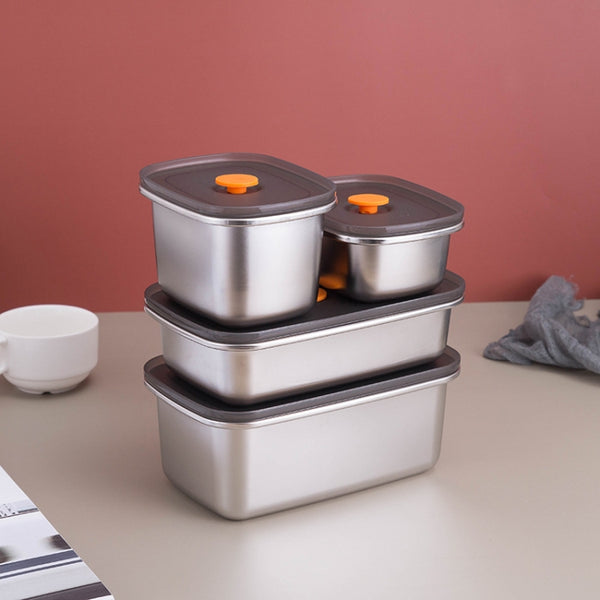 Refrigerator Fruit Fresh-Keeping Box 304 Stainless Steel Sealed Lunch Box, Capacity: 600ml
