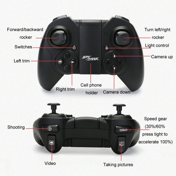 Top Features 720P HD adjustable camera for live video and photos Easy APP control with gravity sensing, safe and simple for kids Multi-direction remote: move, turn, fine-tune, control camera Dual mode gameplay and track driving via APP Adjustable speeds for all skill levels